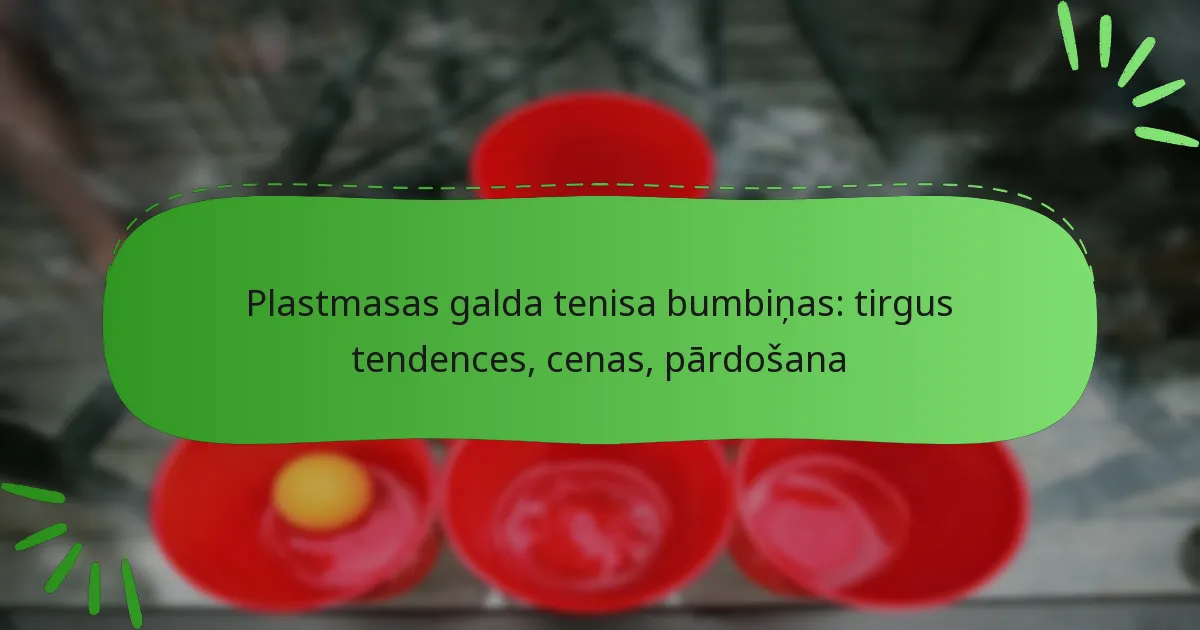 Plastmasas galda tenisa bumbiņu tirgus piedzīvo būtiskas izmaiņas, ko ietekmē patērētāju pieprasījums pēc kvalitātes un ilgtspējības, kā arī ražošanas tehnoloģiju attīstība. Tā kā sports turpina pieaugt popularitātē, ražotājiem un tirgotājiem ir būtiski sekot līdzi jaunākajām tendencēm, cenu svārstībām un pārdošanas snieguma rādītājiem, kas veido šo dinamisko tirgu.